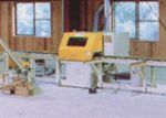 原材料の幅寸法をそろえるための小型昇降盤。特殊注文に対応するために、フィンガージョイントされた材およびムク材をさい割します。 |